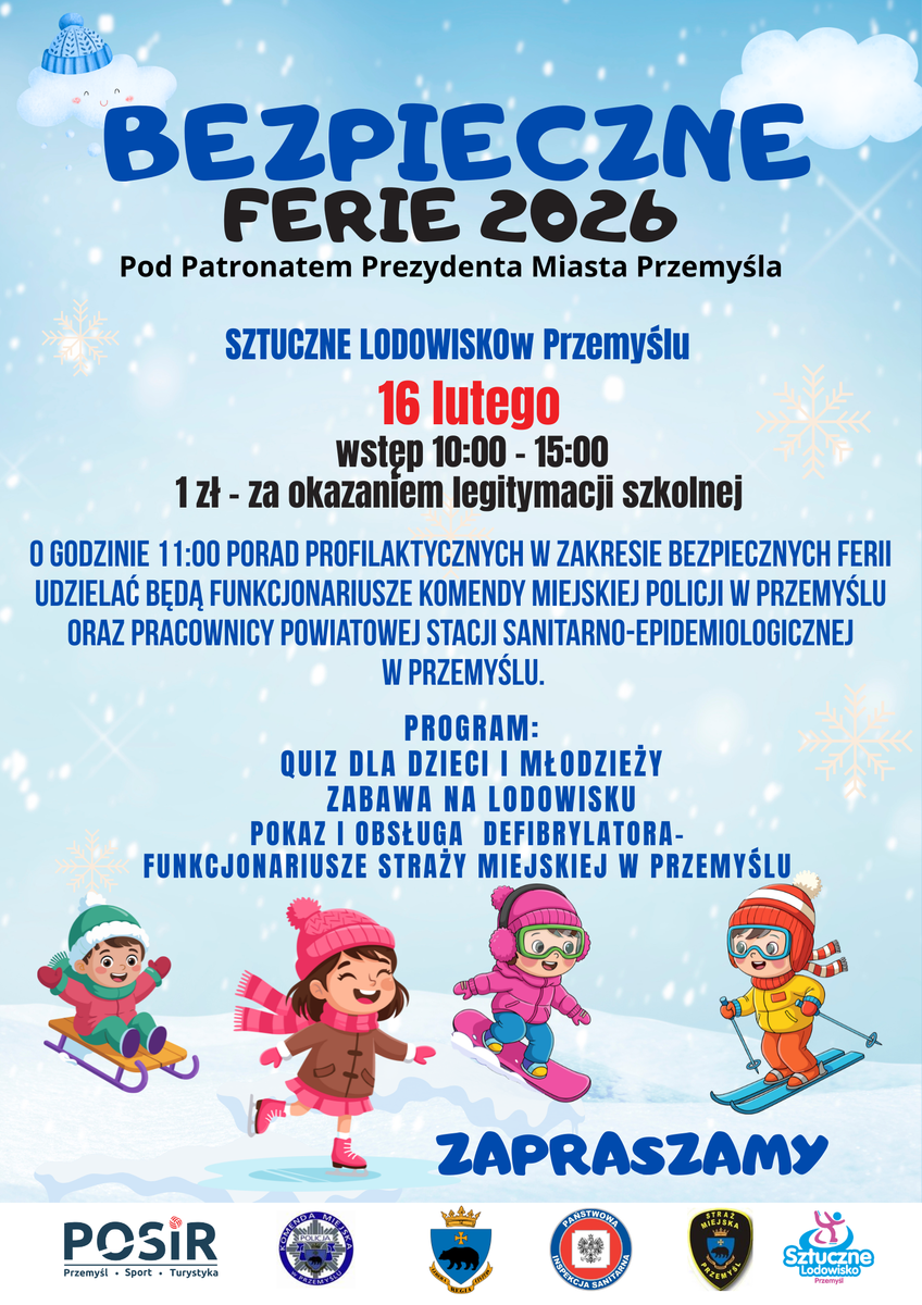 Tym razem, przemyscy policjanci, zapraszają na spotkanie, które odbędzie się 16 lutego 2026 roku o godz. 11 na Sztucznym Lodowisku w Przemyślu przy ul. Sanockiej. Chętni będą mieli okazję wziąć udział w edukacyjnych zabawach i pogadance. Głównym celem spotkania jest propagowanie właściwego zachowania podczas ferii zimowych.