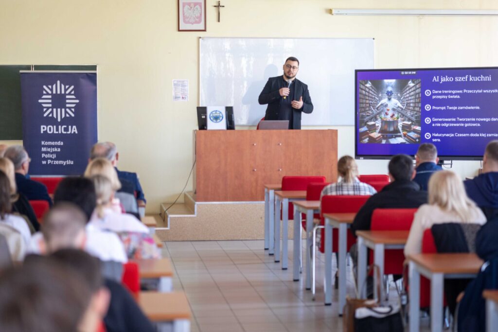 Większość użytkowników Internetu korzysta lub przynajmniej wie czym jest sztuczna inteligencja. Jednak czy wiemy jakie są zagrożenia, na jakich zasadach funkcjonuje, czy jest bezpieczna i czy stanowi doskonałą przyszłość? Te pytania i inne stały się inspiracją do organizacji spotkania profilaktycznego pt. „Sztuczna inteligencja: szanse czy nowe oblicze zagrożeń w Internecie?”. Wydarzenie przygotowane przez Komendę Miejską Policji w Przemyślu, odbyło się 15 kwietnia br., w murach Państwowej Akademii Nauk Stosowanych w Przemyślu, dzięki uprzejmości Taron Tovmasyan – Koordynatora Projektu Pomag(AI).