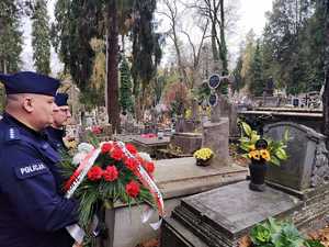 Dzień Wszystkich Świętych to szczególny czas, w którym wspominamy tych, którzy odeszli. Komendant Miejski Policji w Przemyślu podinsp. dr Janusz Kiszka wspólnie z Prezydentem Miasta Przemyśla Wojciechem Bakunem oraz Krzysztofem Drabikiem - krewnym funkcjonariusza Policji Państwowej w ciszy i zadumie oddali hołd policjantom II Rzeczpospolitej, którzy poświęcili swoje życie na służbie.